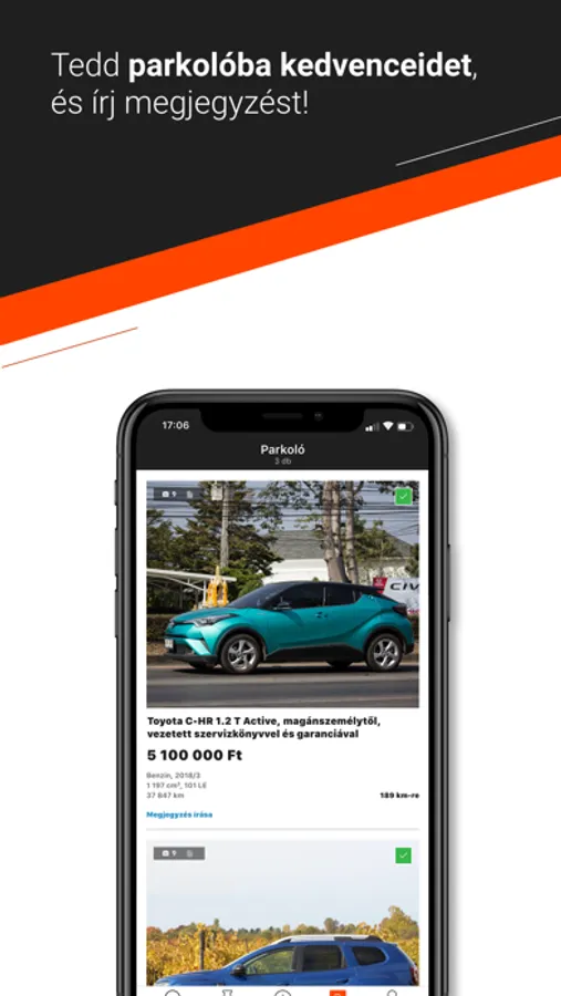 - A neked tetsző hirdetéseket kedvencnek jelölheted, így a “Parkoló” menüpontban később is gyorsan megtalálhatod őket.
