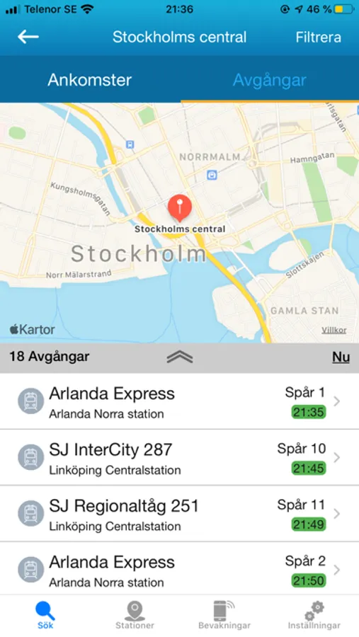You already know how to get from A to B. LiweTrip helps you to keep track of deviations in your daily commuting. It covers all of Sweden. Schedule monitoring of your everyday trips and receive notifications on departure times, deviations and cancelations. The LiweTrip service covers the following: