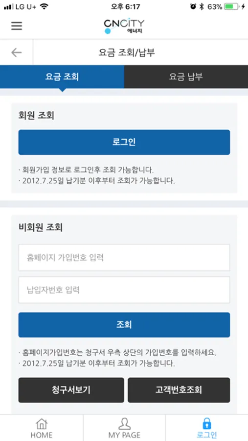 - 요금 조회 및 요금 납부를 하실 수 있습니다.