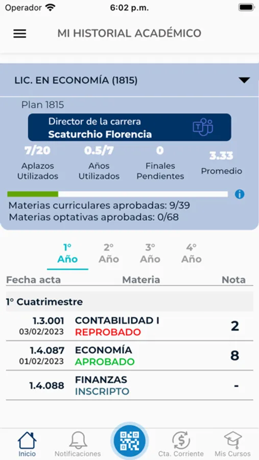 • Ver tu historial académico, tus trámites finalizados o pendientes y tu cuenta corriente.