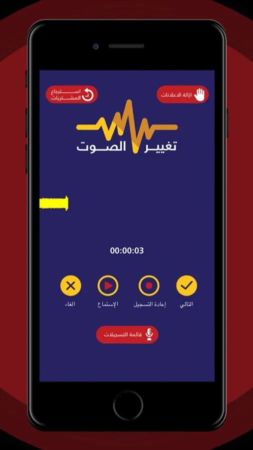 تطبيق لتسجيل وتغيير الاصوات, التطبيق يمكنك تسجيل صوتك بشكل واضح بدون تشويش و حفظ التسجيل أو مشاركته بسهولة,كما يمكن تغيير أي صوت تقوم بتسجيله سواء كان صوت رجل أو صوت إمرأة واختيار المؤثر المناسب لإضافته على الصوت.