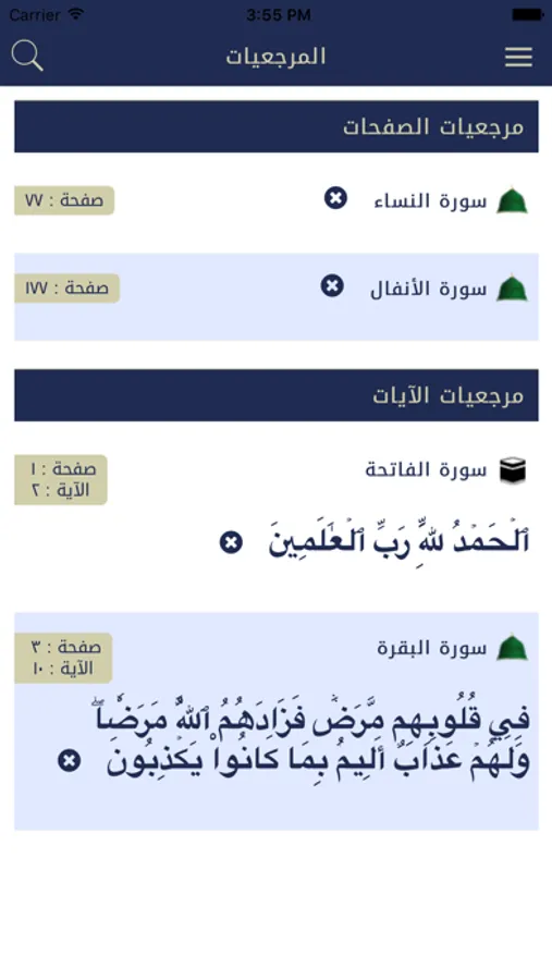 •عرض القرآن الكريم –رواية حفص-على هيئة صفحات سهلة التصفح والقراءة والتنقل فيما بين الصفحات والآيات بسهولة.