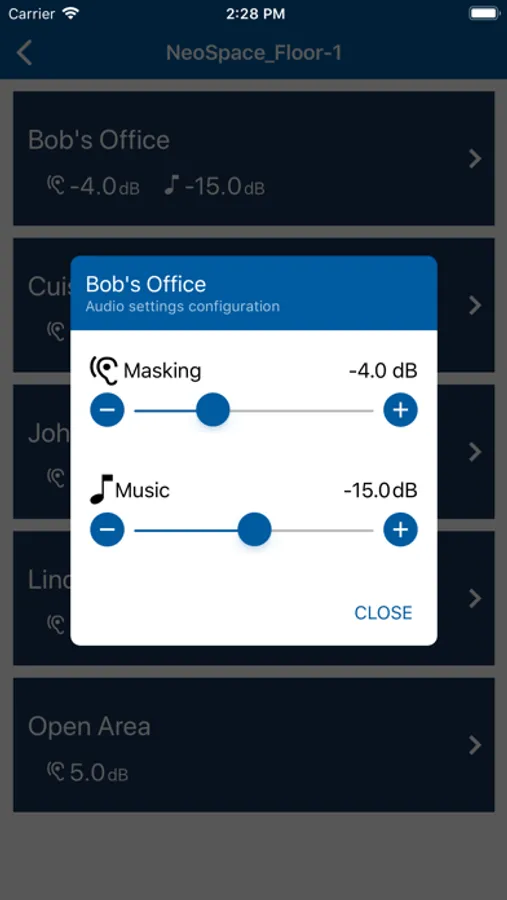 The smartSMS-NET app allows to control your smartSMS-NET sound masking system. Adjust the masking sound and music volume of each zone independently.