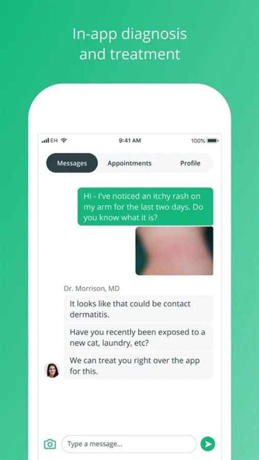 + Describe your symptoms to a doctor, determine if you need to see a clinician in-person and in some cases, get treatments and medications prescribed virtually