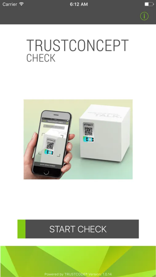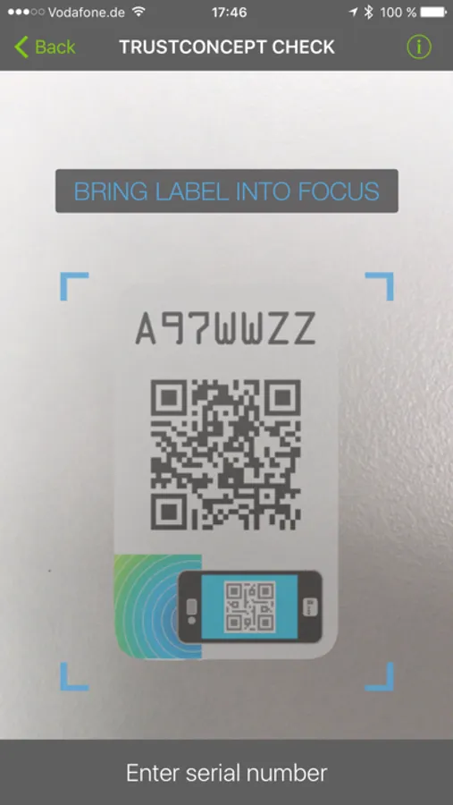 TRUSTCONCEPT CHECK app is a web-based authentication system that connects the real world to the virtual. The TRUSTCONCEPT CHECK app designates visual authentication elements on the TRUSTCONCEPT CHECK label which are linked to a comprehensive database for online authentication purposes.
