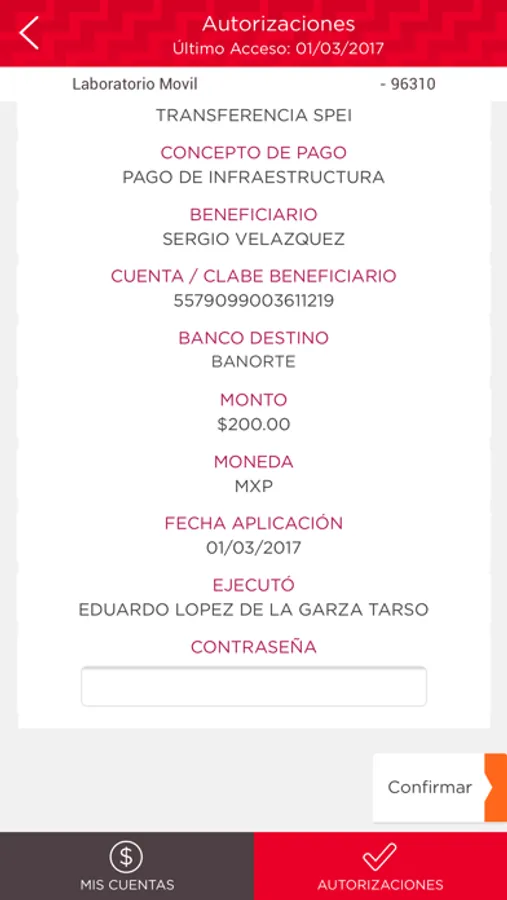 Transferencias (SPEI, TEF, Terceros, Propias, SPID)