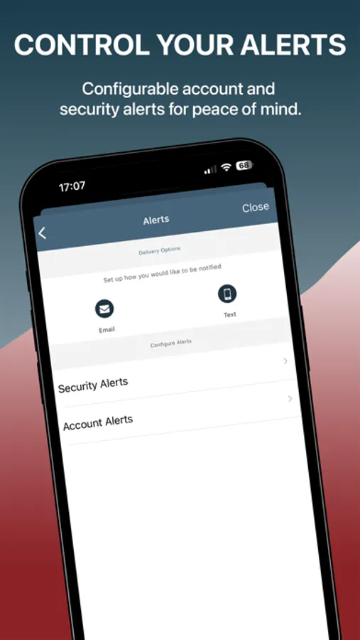 • Manage your debit cards app features with the push of a button