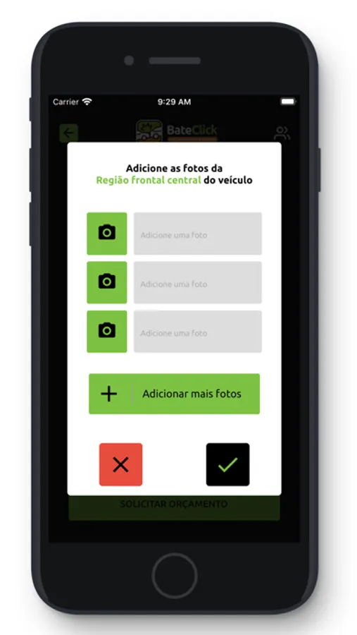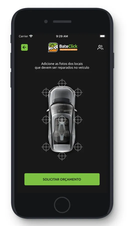 - Baixe o Aplicativo (gratuito), tire FOTOS da área danificada, informe o modelo do carro, a região (cep) que deseja e pronto!