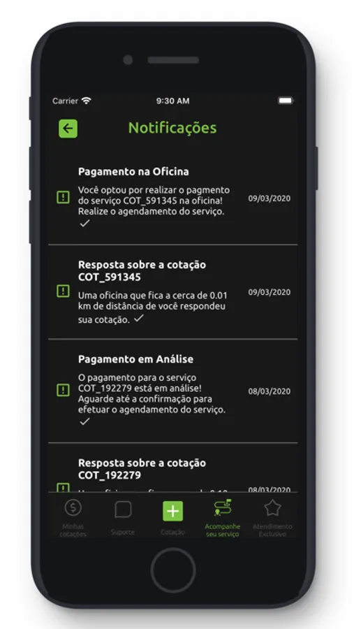- Em poucas horas nossa rede de Oficinas irá enviar os orçamentos para você analisar.