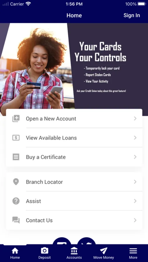 Nizari Progressive Federal Credit Union Mobile provides members convenient access to our website, mobile check deposit, mobile banking, branch and contact information. For members using the new iPhone 7, a 3D touch feature has been added for even faster navigation.