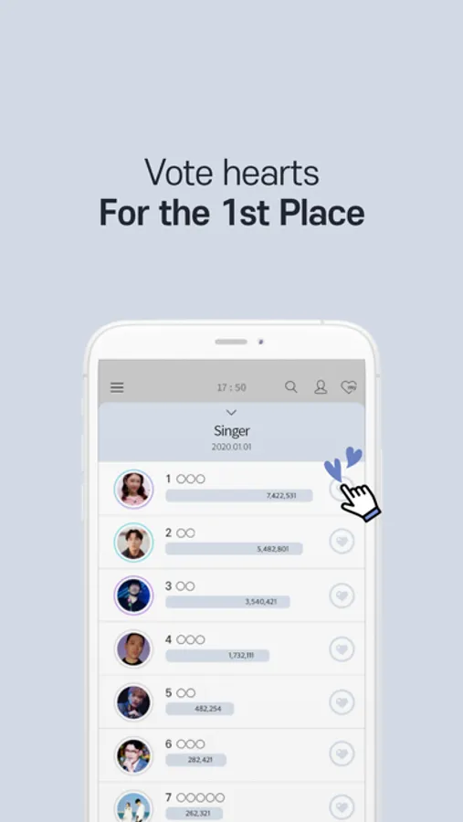 - Vote hearts to your Celeb and make him/her rank No.1.
