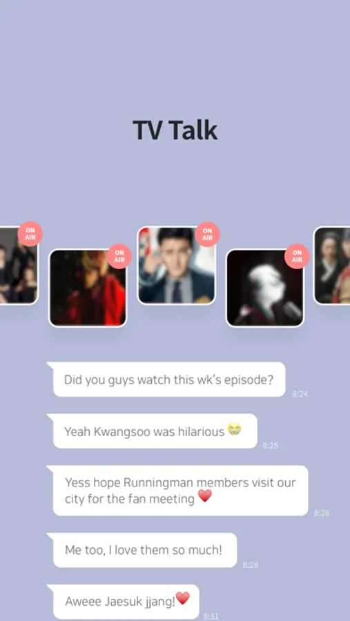 Miss Trot, Mister Trot, Running Man, Knowing Bros, I live alone, Crash Landing on You, Itaewon Class. Hi Bye, Mama!