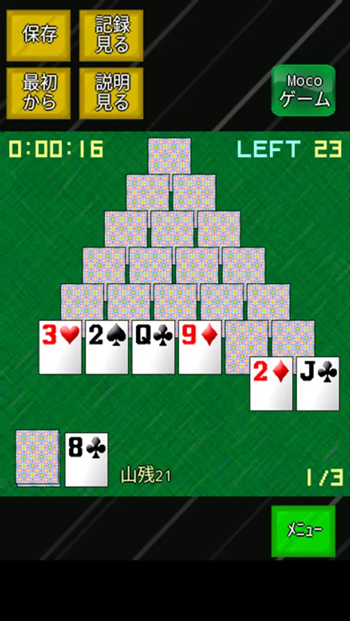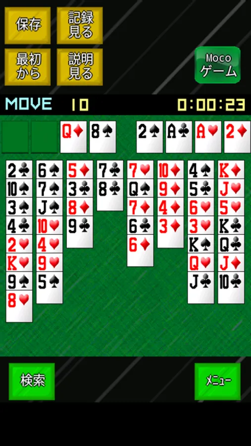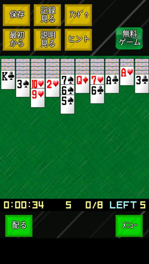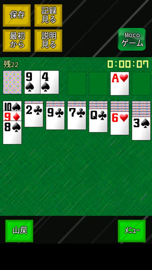 ・人気のソリティアは初期配置パターンが複数あったり、カードを二組用いるダブルモードが実装されています。