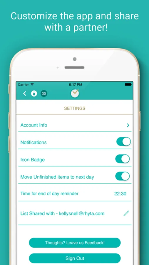 Life Lister is a simple daily task list that forces you to be productive. Add all of your to-do items for the day and try to get as much done as possible! Don’t worry though, anything you don’t complete will be rolled into the next day for you. Move list items up and down in priority by tapping and holding to rearrange. Is an individual item too big? Add a new “Vault Category” and then break the larger item into smaller, easier to accomplish sub tasks, and move them to the current day when you’re ready. Do you have a significant other or best friend you’d like to share with? Partner up and discover how super productive you both can be with the shared list features. There are many other features to explore. We truly believe that keeping a short daily task list is the best decision you can make to increase your productivity. Enjoy!