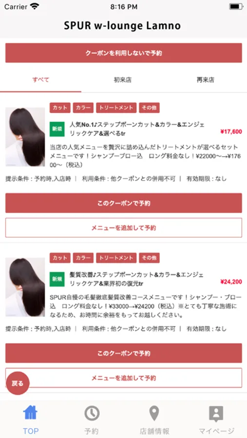 お得なクーポンが配信されます。ネット予約時にクーポン利用での予約も可能なので来店時もスムーズに施術頂けます。