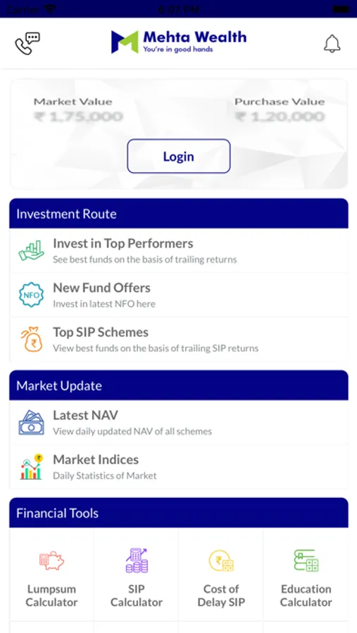 Mehta Wealth is one-stop shopping for all your Financial needs. You can use this state of the art app to stay on top of your Complete Financial Portfolio with all assets: