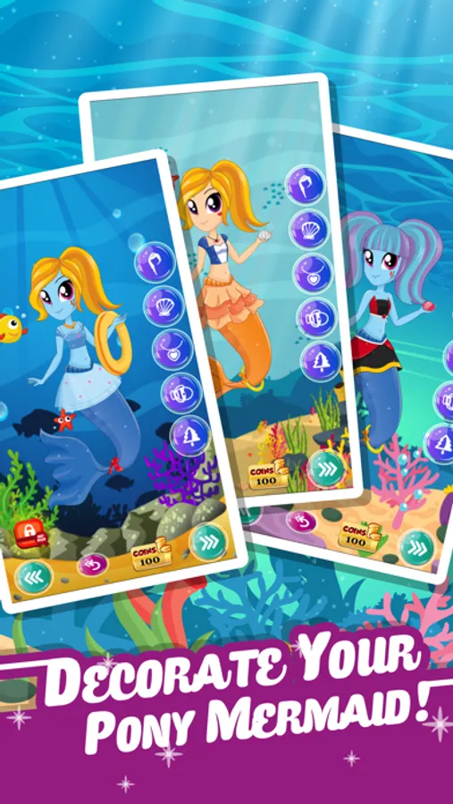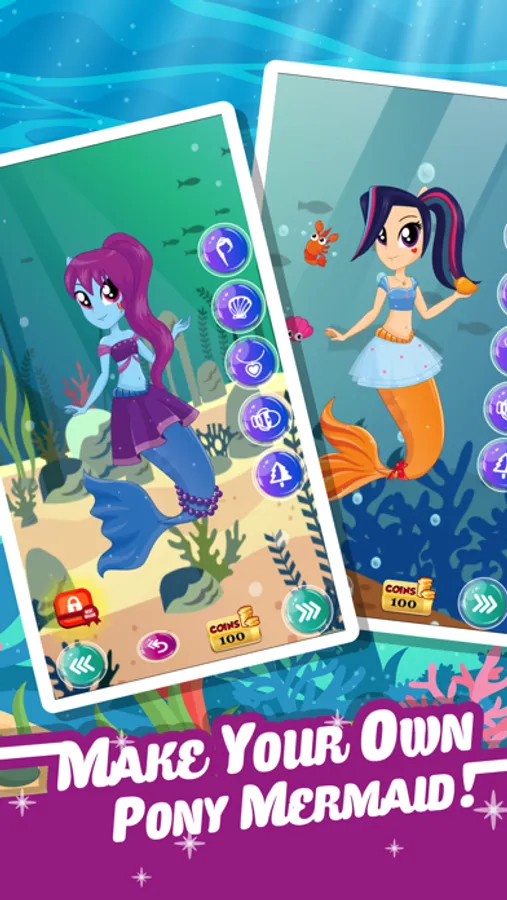 Get your groove on and put that fashion taste and creativity into good use. Create the cutest little Pony Mermaid with the most outstanding and fashionable clothes and accessories.