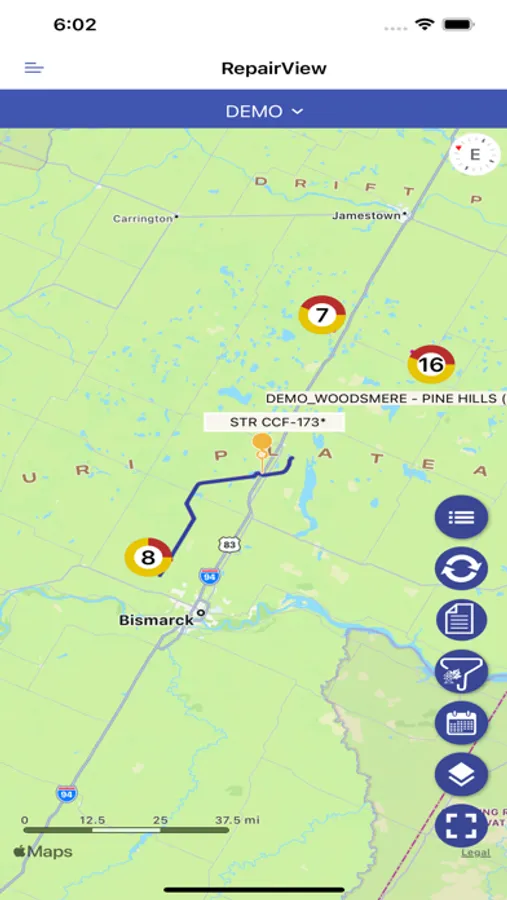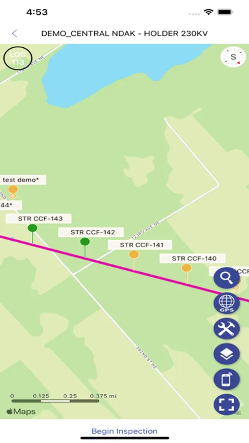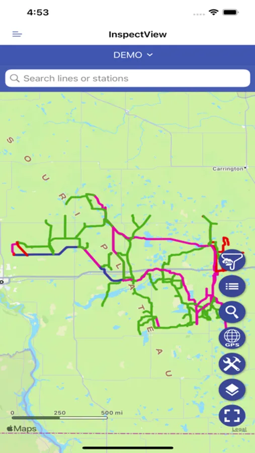 LineGuide is an application that helps power companies inspect their transmission lines. Inspectors may inspect lines, poles, and substations and take pictures to support their findings. Transmission Line Coordinators (TLCs), Contractors, and Linemen may view all necessary repairs from the Repair View. Workflow is supported with engineering documents attached to lines and Driving Directions.
