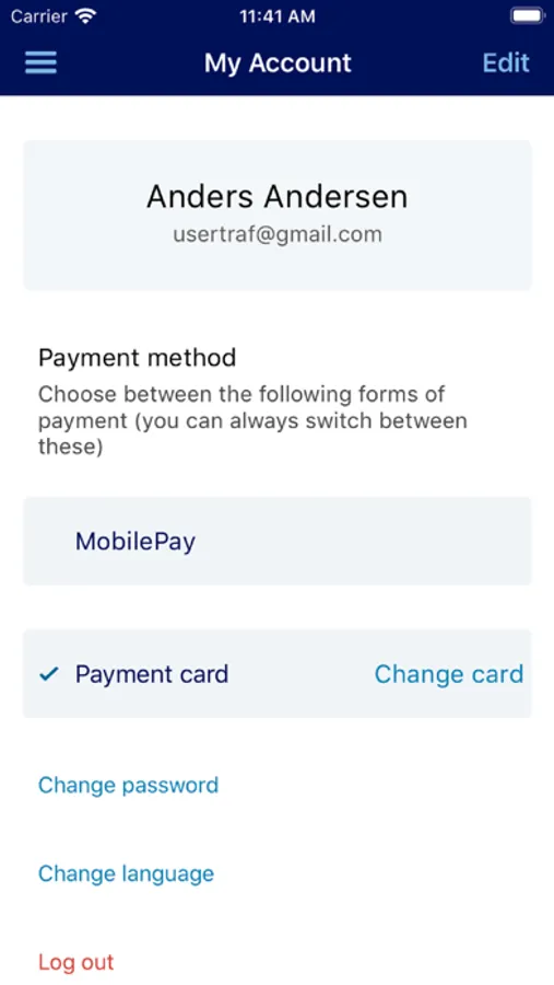 You need to create an account, before purchasing a ticket. You can use credit cards or Mobile Pay.