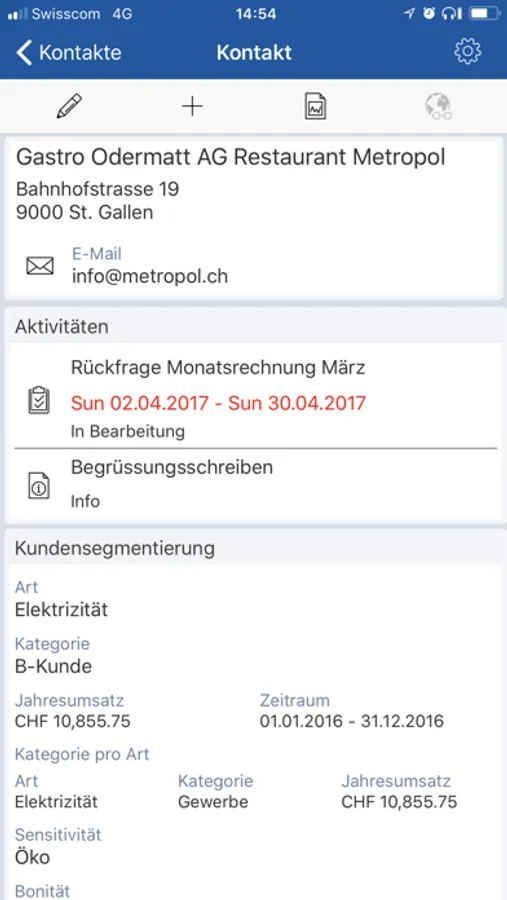 Natürlich können Sie auch Daten eingeben – etwa eine neue Kontaktperson oder eine Telefonnummer. Als Monteur erfassen Sie Gerätewechsel. Und als Ableser vermerken Sie die Zählerstände. Sie sparen Kosten: Denn Sie brauchen kein separates System für die mobile Datenerfassung (MDE).