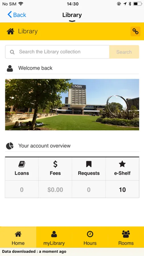 • Library- Access your personal account for loans, fees, requests, as well as search the library database for resources and book study spaces
