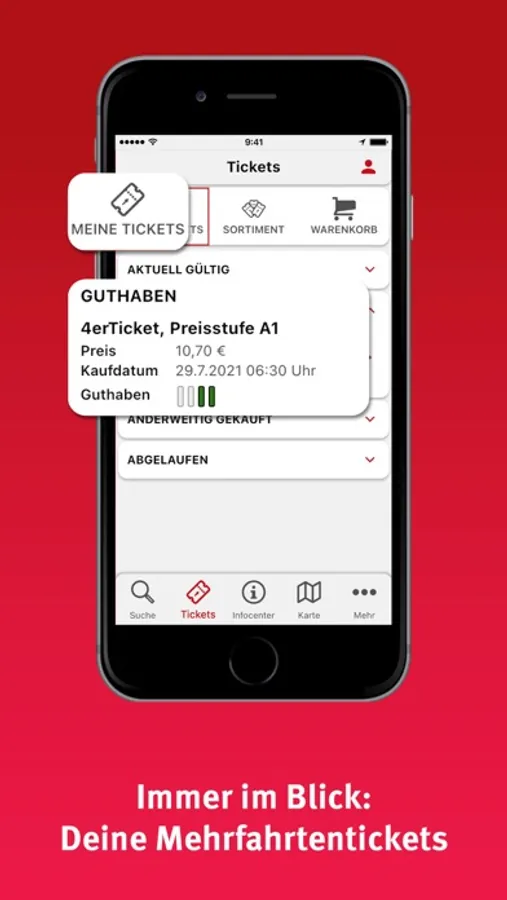 Schon mal vergessen, dass du noch ein Ticket von deinem 10erTicket oder 4erTicket hattest und versehentlich neu gebucht? Die Zeiten sind vorbei, denn die App zeigt dir dein Guthaben direkt an.