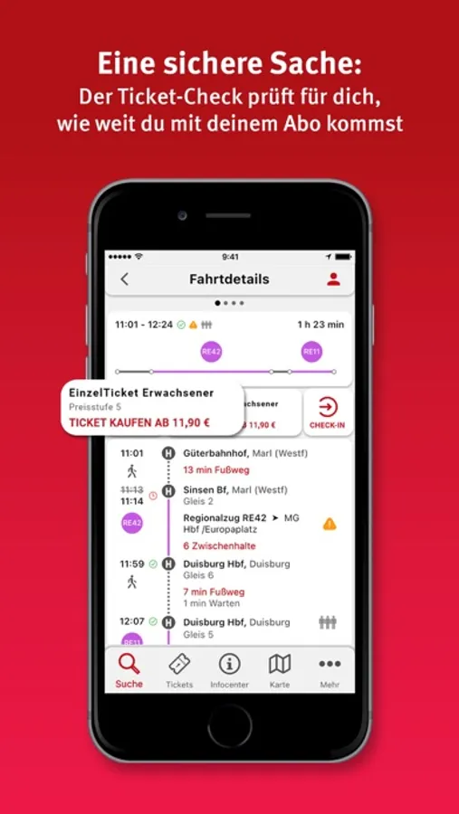 Such dir deine Verbindung, die App checkt bereits bei der Eingabe im Hintergrund deinen persönlichen Abo-Geltungsbereich und zeigt dir an, ob du ein ZusatzTicket oder ein weiteres Ticket benötigst.