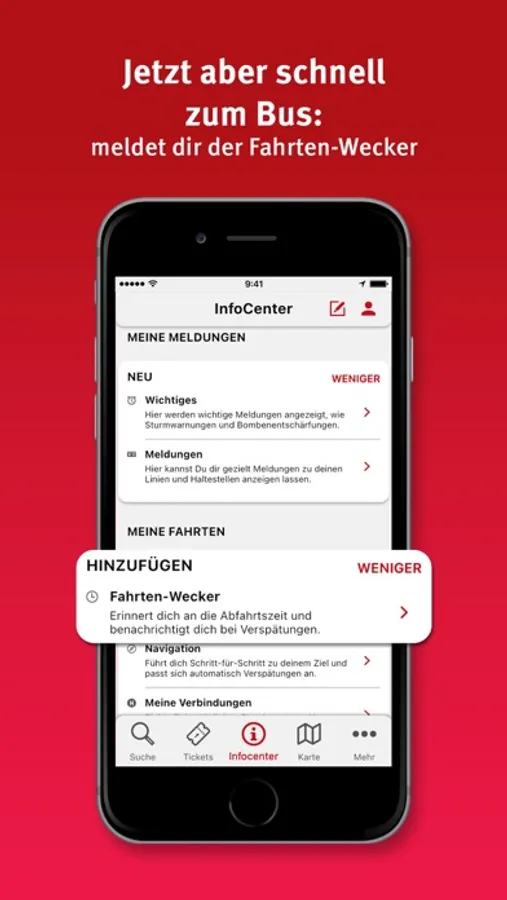Du möchtest erinnert werden, dass es Zeit ist, dich zur Haltestelle aufzumachen? Oder interessiert dich, ob dein Bus oder deine Bahn verspätet ist? Der Fahrtenwecker schickt dir rechtzeitig eine Notification.