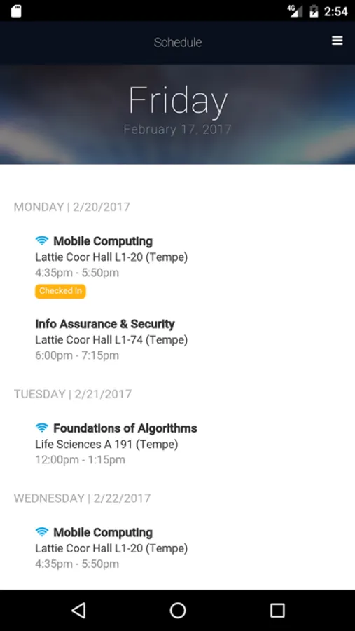 Now featuring the ASU Engagement app. The app allows students to be automatically checkin to classrooms that have Smart technology or you can checkin using a button and keep track of which classes you have attended or missed.