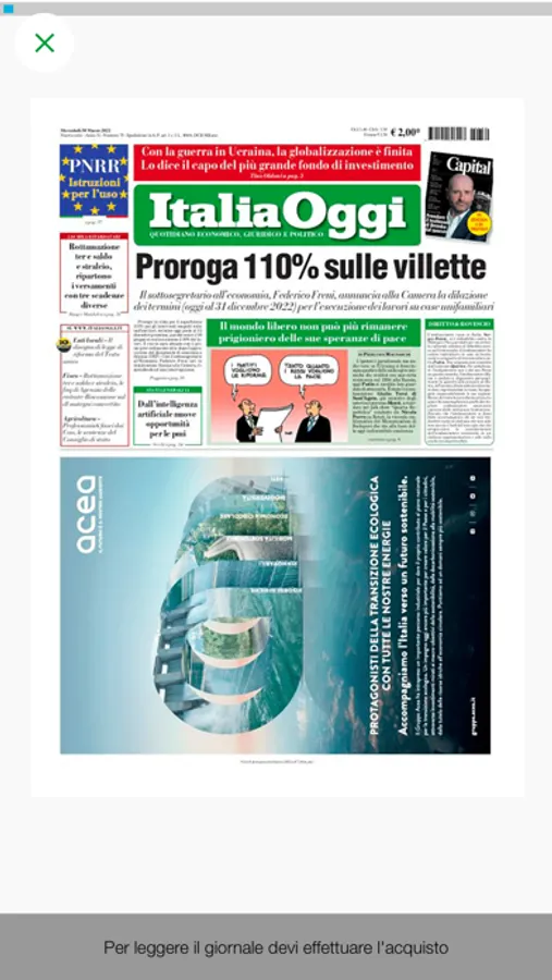 L'applicazione è scaricabile gratuitamente da App Store e consente di accedere all'archivio delle ultime edizioni pubblicate tramite acquisto di copia singola e varie tipologie di abbonamento autorinnovabile. Se possiedi già un abbonamento all'edizione digitale di ItaliaOggi, potrai accedere da subito inserendo le credenziali del tuo account nella sezione Mio Profilo.