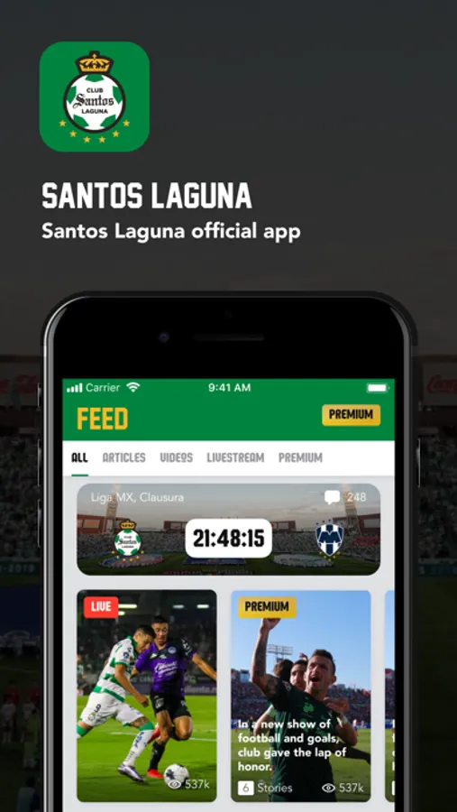Una nueva aplicación oficial del Club Santos Laguna, con el principal objetivo de darte una experiencia única a través de nuestros contenidos de video y cobertura única de nuestros partidos, además de toda la información sobre nuestra participación en la liga y los jugadores que necesitas para apoyar al equipo que amas.