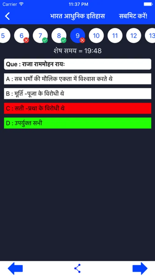 * Training Mode:- In this mode ,you will be provided 20 MCQ and with timer and graph to check your knowledge and speed