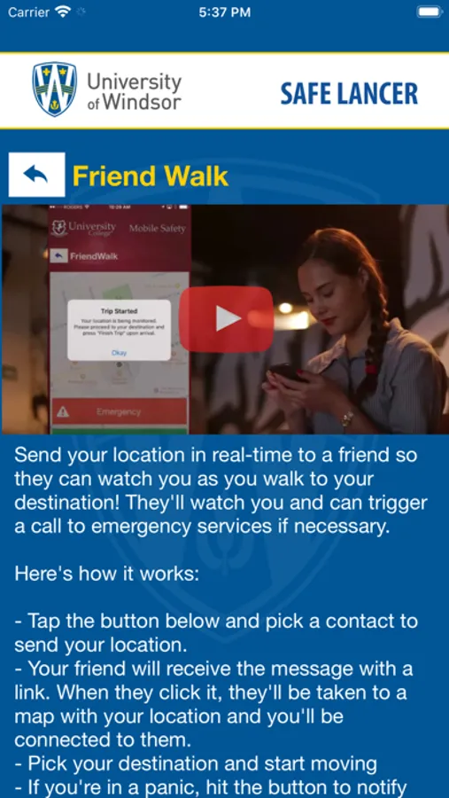 - Campus safety resources: access all important University of Windsor safety resources in one convenient app.