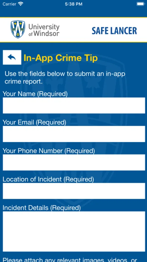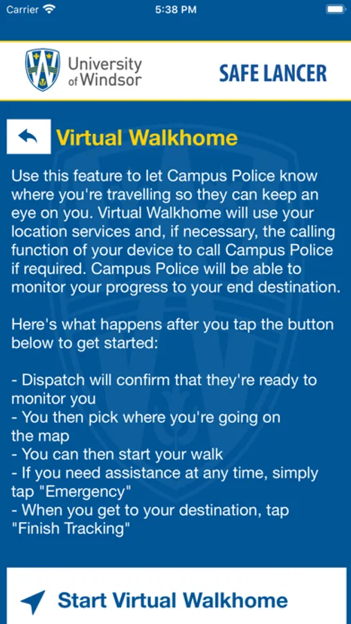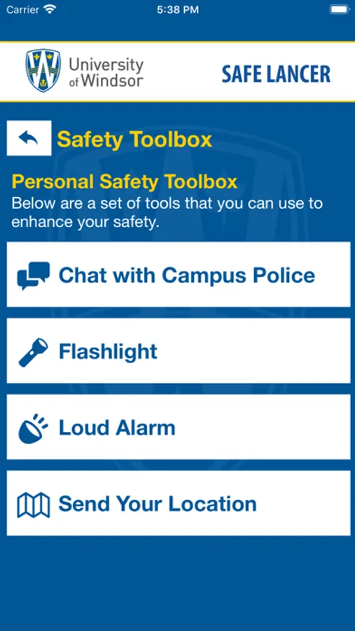 SAFE LANCER is an essential tool to enhance your safety at University of Windsor. The app will send you important safety alerts and provide instant access to campus safety resources. SAFE LANCER is the official mobile safety app of the University of Windsor.