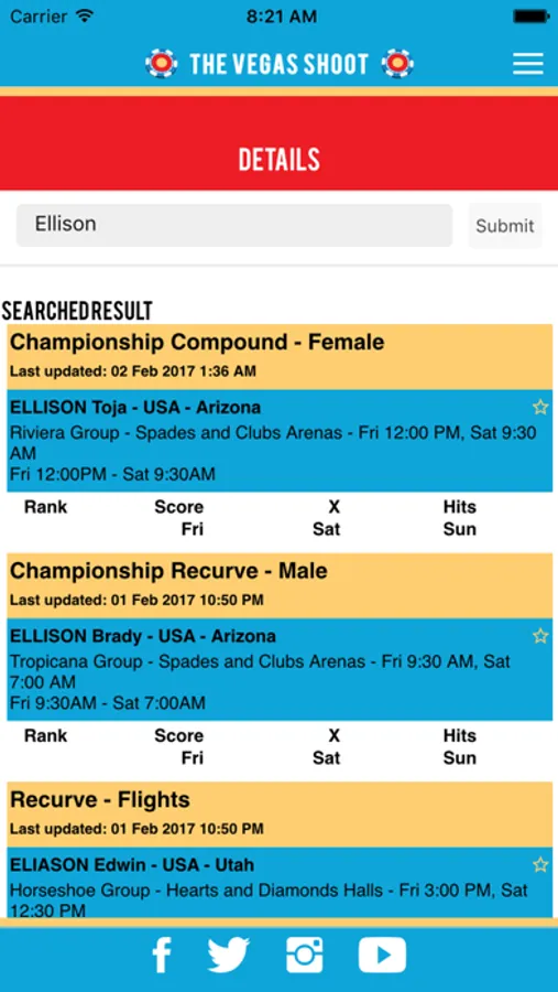 Get live Results, Schedule and Trade Show details from 2020 "The Vegas Shoot" event.