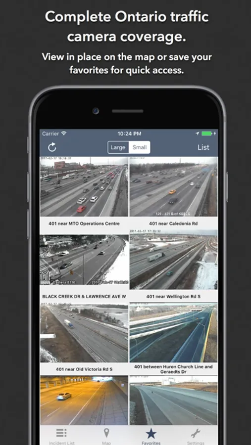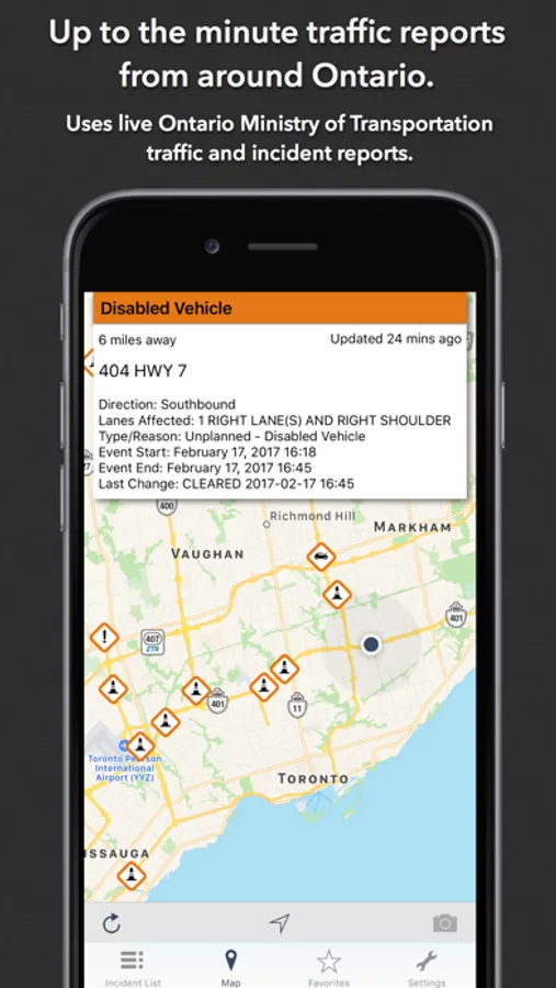 Live traffic reports and cameras for Ontario including Toronto and Ottowa. Save your favorite cameras for quick access. The January 2020 release includes winter road conditions and a new dark mode.