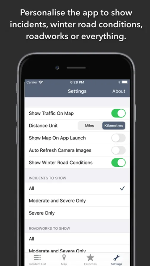 - Today screen widget to show at a glance the nearest current traffic incidents.