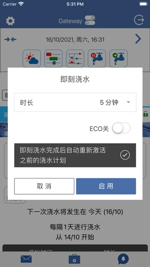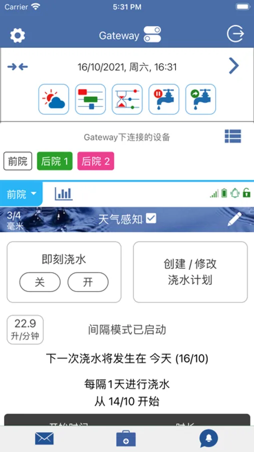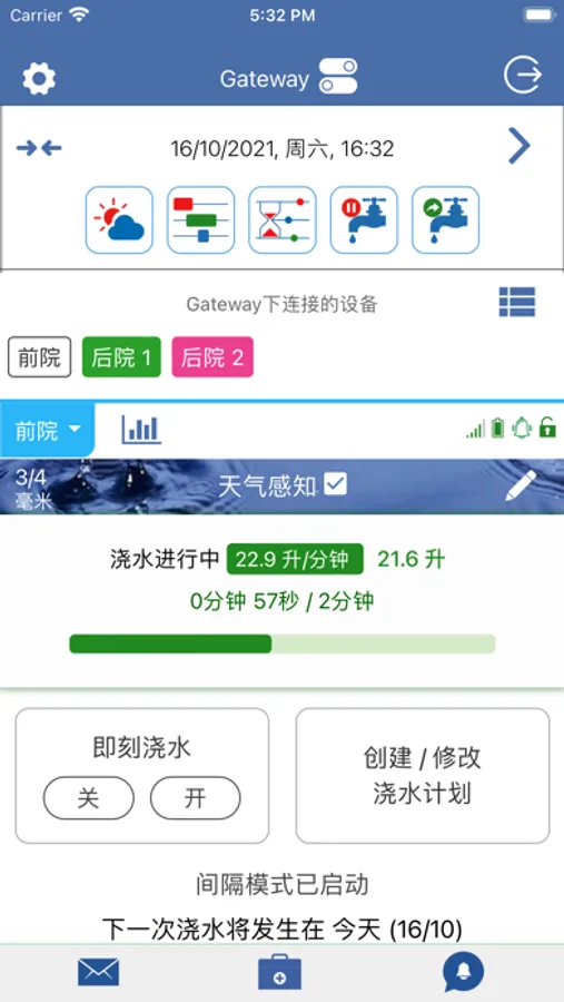 4) 通过实时消息推送功能来实时了解到浇水开始/浇水结束/天气感知/电池电量低/网关离线等事件;