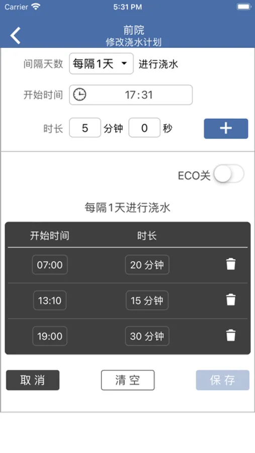 -每次的浇水时长:1分钟至23小时59分钟之间