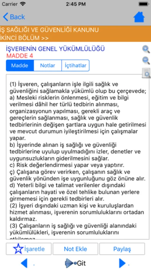 1-Yıldız işaretine basarak Kanun maddesini işaretleyip İşaretlediklerim menüsünden hızlıca ulaşabilirsiniz.