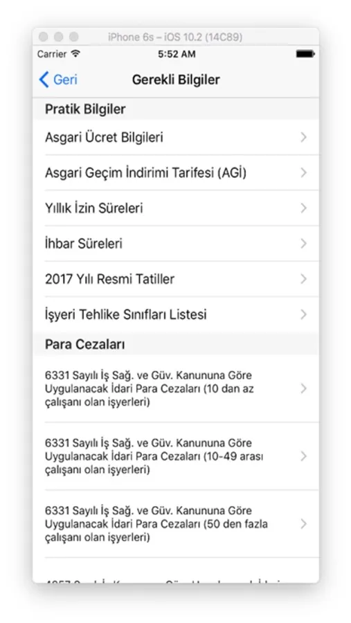 Uygulama içerisinde İSG ile ilgili Kanun, Yönetmelik ve Tebliğler yer almaktadır.
