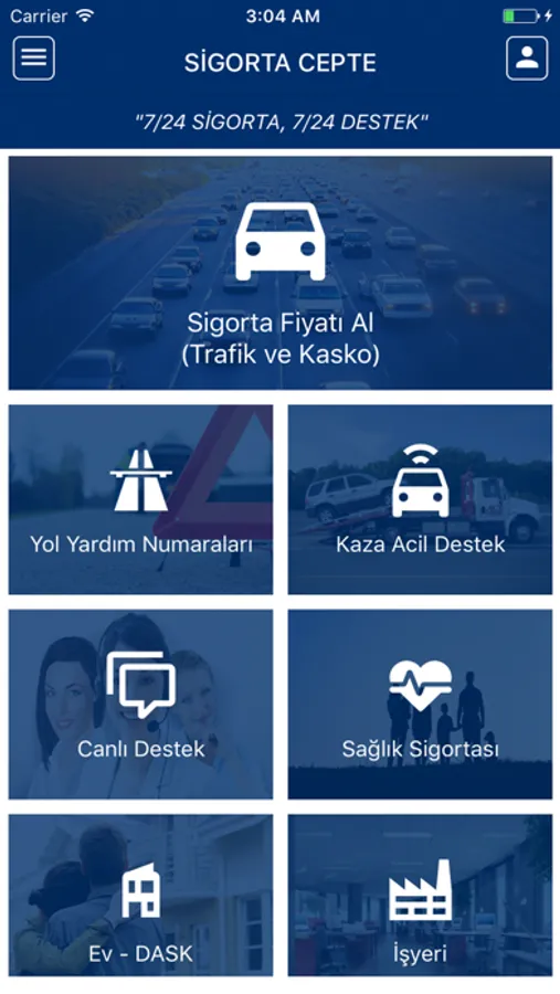 Kolay kullanım, 7/24 sigorta, 7/24 destek için sigorta cepte uygulaması sizler için geliştirilmiştir.