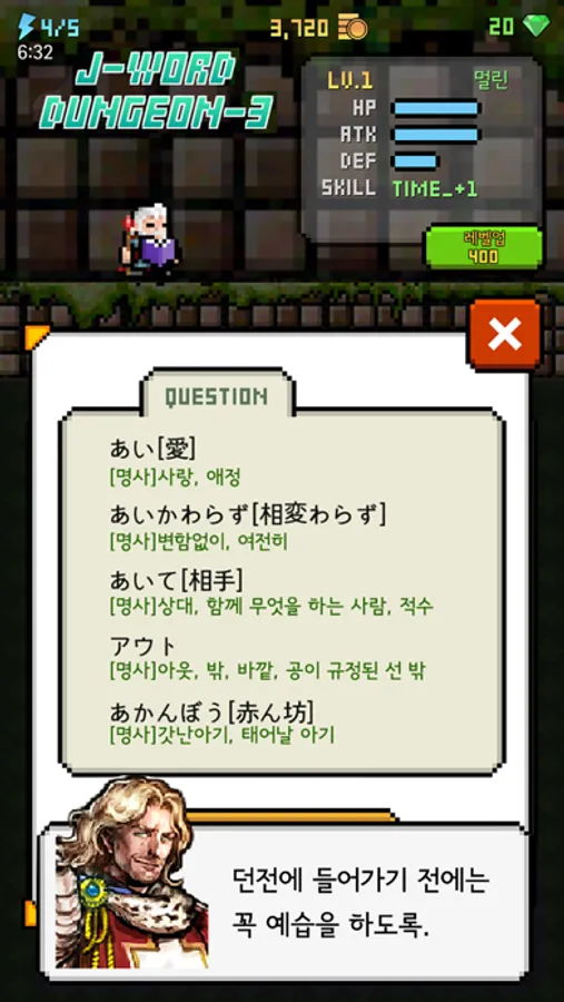 1. 명사-A 던전 : JLPT N3 난이도의 명사-A 단어를 익힐 수 있는 던전