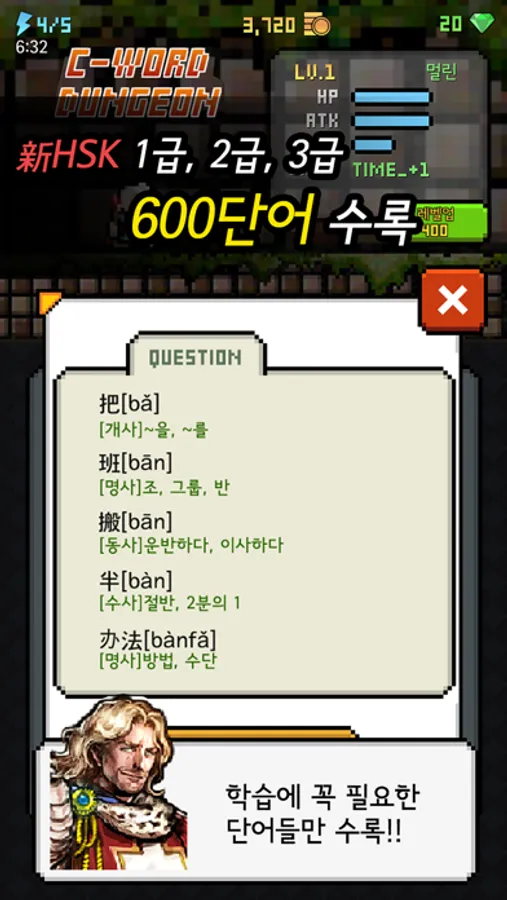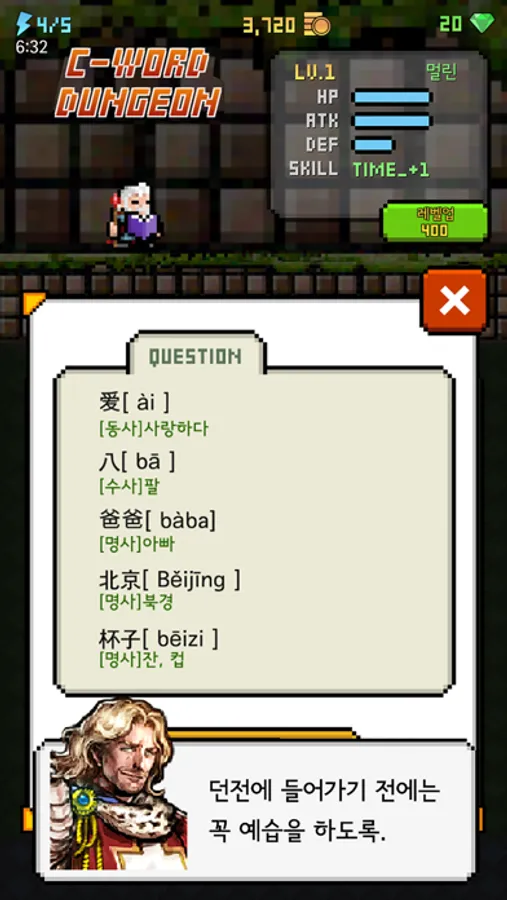 1. 1급 던전 : 新HSK 1급 난이도의 단어를 익힐 수 있는 던전
