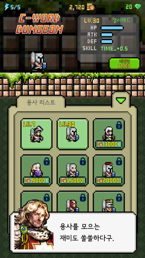 용사와 함께 게임을 하면서 중단어를 재미있게 익히세요!