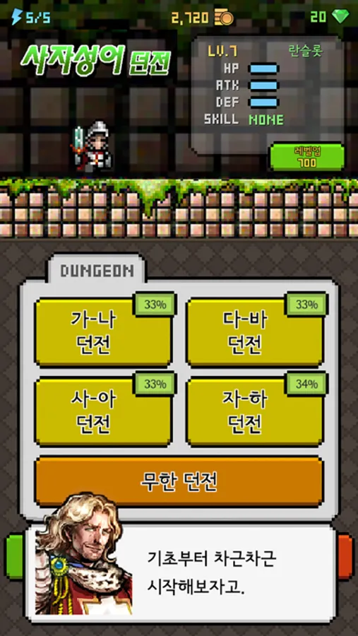 2. 무한 던전 : 던전에서 익혔던 사자성어들을 맞추며 내 실력을 알아보는 무한 던전
