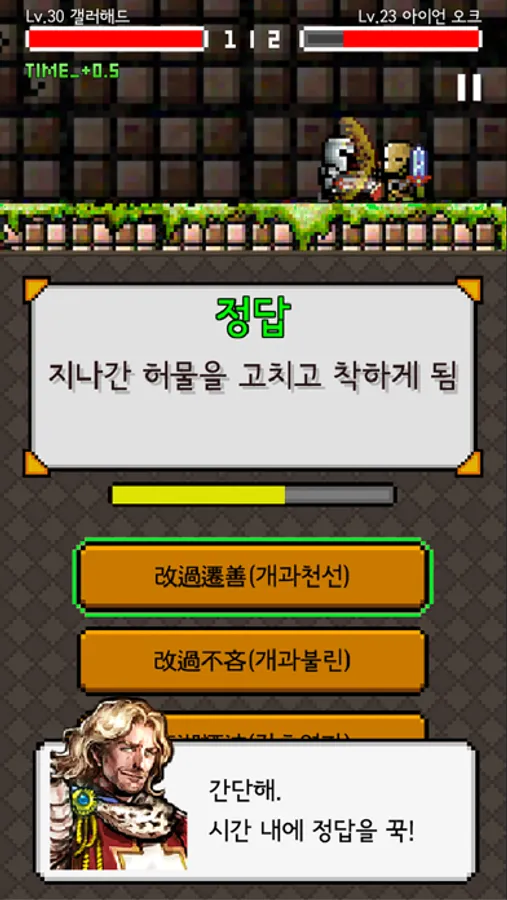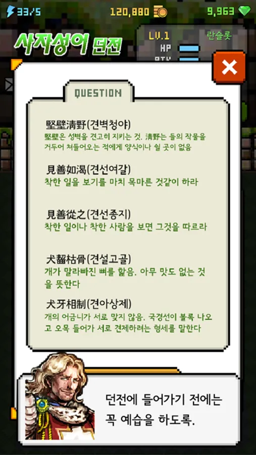 용사와 함께 게임을 하면서 사자성어를 재미있게 익히세요!