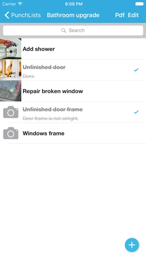 You can add to each item up to 3 images to make your punch item easier to understand. You can also mark item done with a single tap. If you want to quick find an item, let use search box. And you can re-order item to make the punch list as you want.