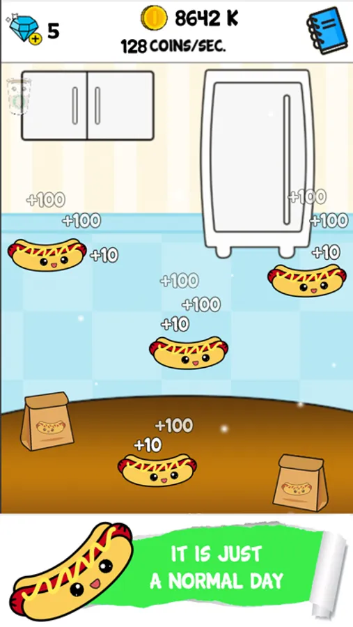 • Drag and drop similar Hotdog to evolve them into new and more profitable Hotdog
