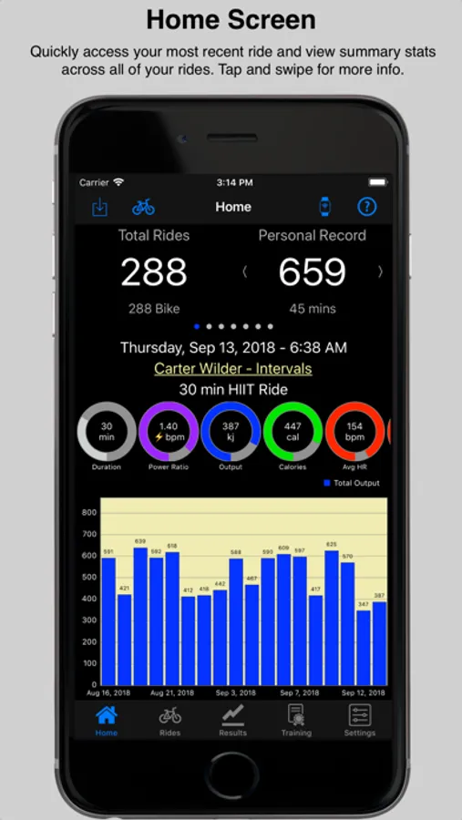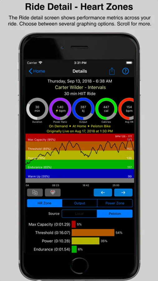 1) You can take advantage of mPaceline’s Watch App. The watch app offers you a visual of your ride and you can quickly glance at your wrist to see how you are doing. Workouts done on the watch are automatically transferred to the iPhone App when the workout concludes. Here you can view your full workout details. Note - if you choose to, you can stream the workout from your watch to the iPhone app and have both devices showing you your data.